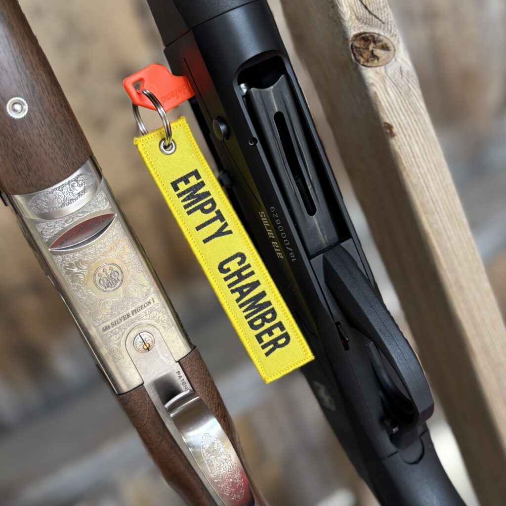 Från och med i år är det infört att det ska finnas en signalfärgad flagga i patronläget under hela tiden man är på skjutbanan